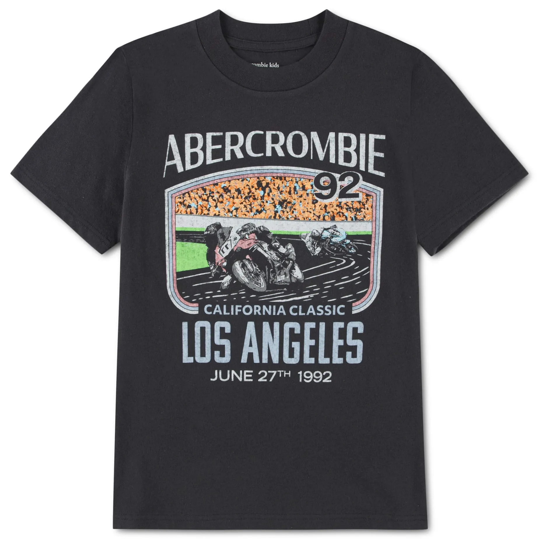 Featuring a vintage look graphic of motorbike racers, this standard fit tee from abercrombie kids is a must for kids who have the need for speed! It’s made of cotton/poly jersey in a classic short sleeve silhouette with a tagless crewneck for a fuss-free feel that adds to the comfy fit.