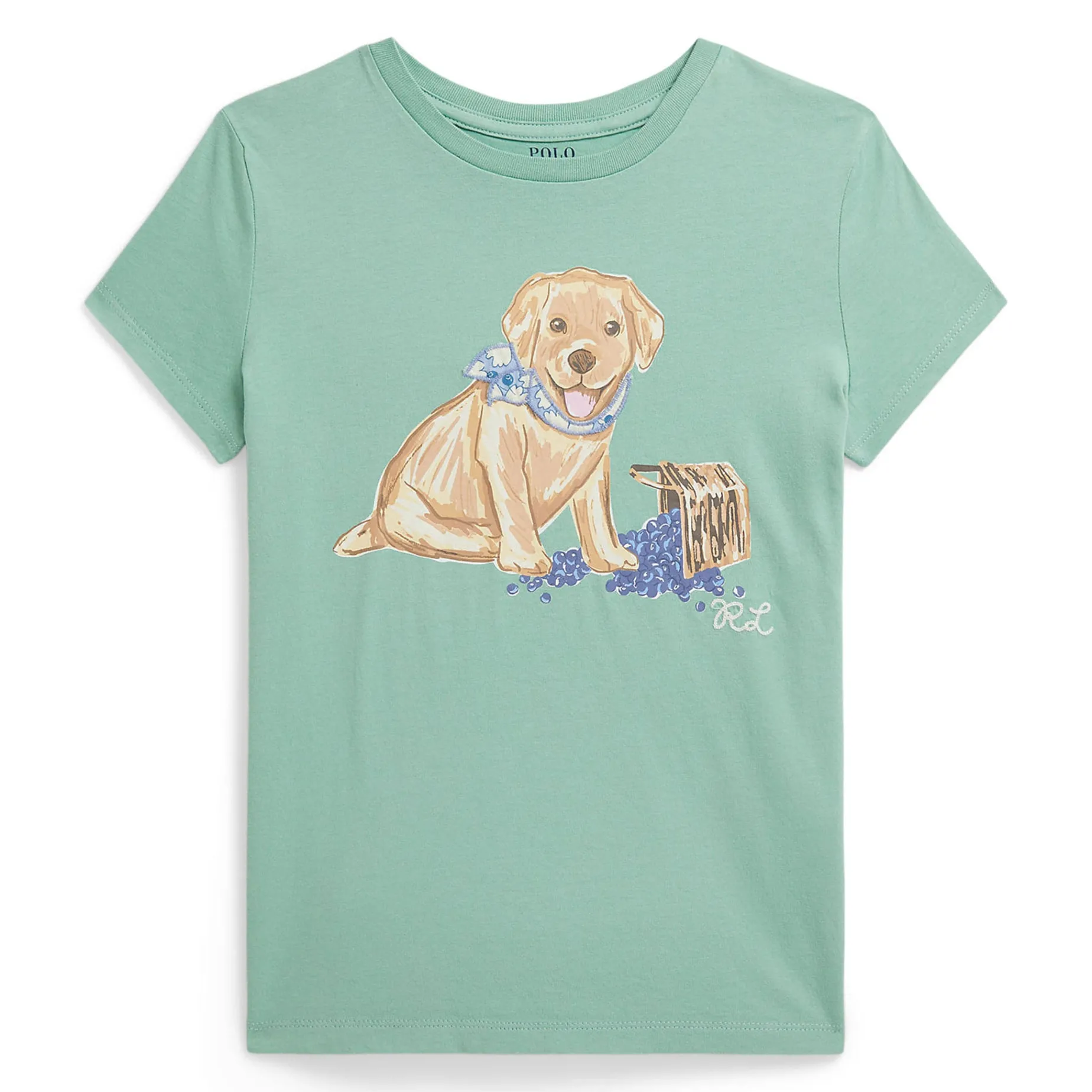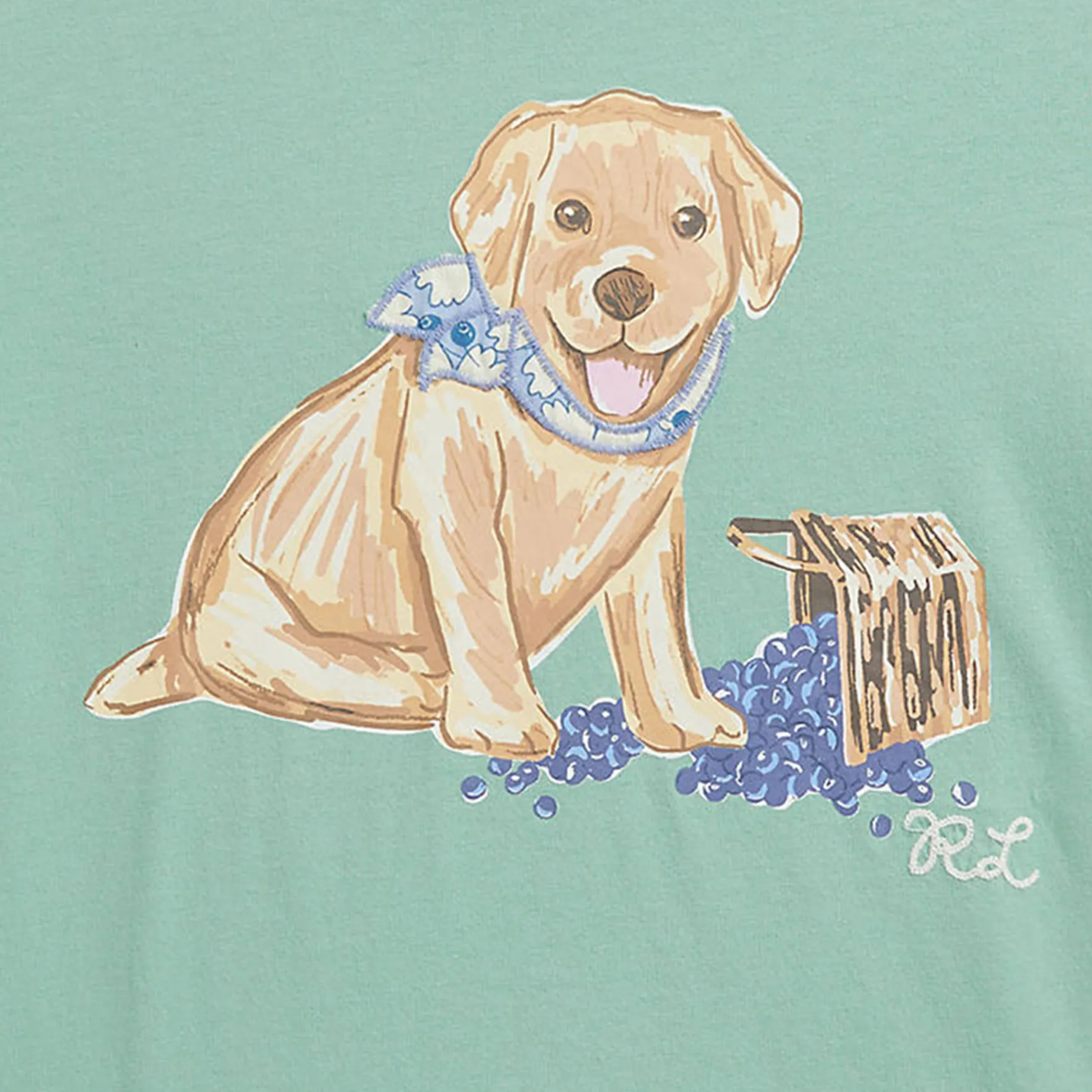 Dog print and chain-stitched “RL” embroidery at the center front.