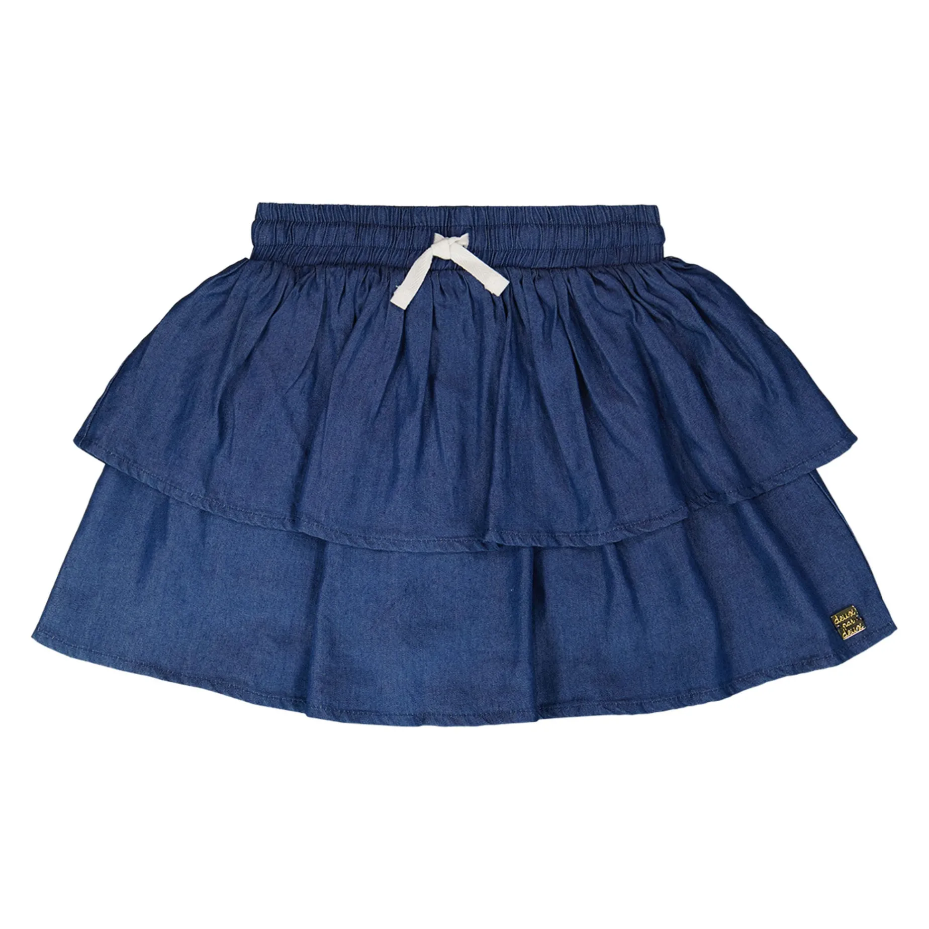 The blue chambray skort combines the playful look of a skirt with the comfort of hidden shorts. Made from lightweight chambray, these bottoms feature tiered layers, a gathered waistband with drawstring, and a flowy A-line cut for easy movement. A versatile piece from our “Under The Daffodils” collection, perfect for twirling and everyday adventures.