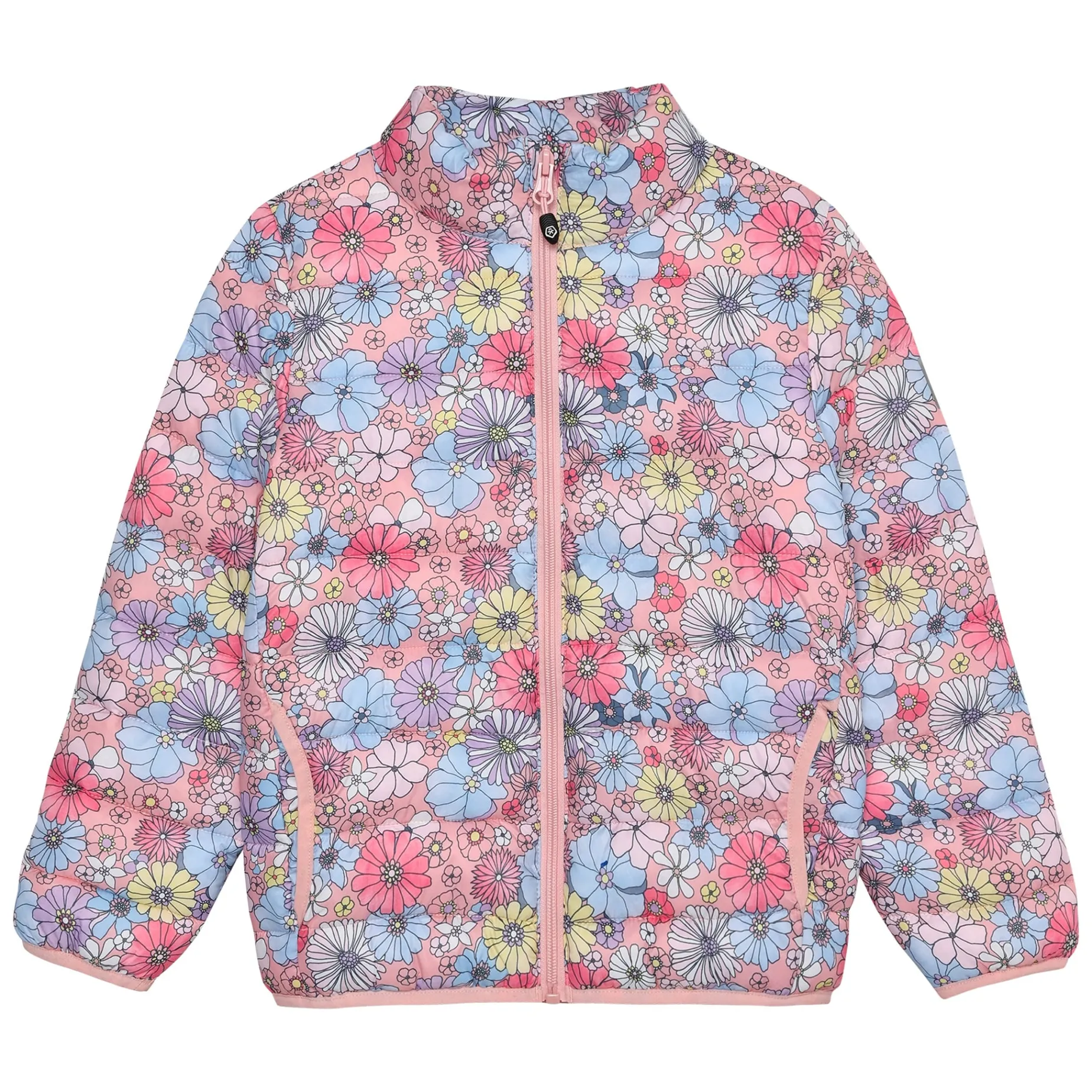 BIONIC FINISH® ECO Floral jacket with soft padding from Color Kids. The jacket is breathable and has a water- and dirt-repellent surface. A small fabric guard at the end of the zipper provides extra comfort at the chin. The jacket is equipped with pockets and reflective details. Coated with BIONIC FINISH® ECO