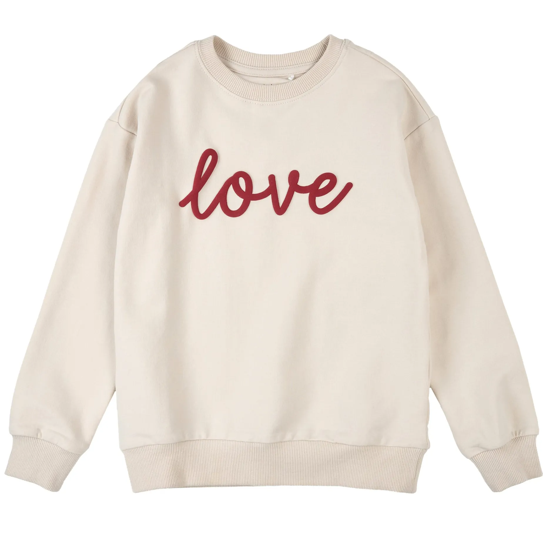 A sweet tribute to Valentines Day, this cozy French Terry sweatshirt is an easy throw-over choice for any day of the week. With ribbed cuffs and a simple rounded neckline, the top has a snug fit for all-day comfort. It’s finished with an applique text on the front which matches mom’s sweatshirt from the same collection.