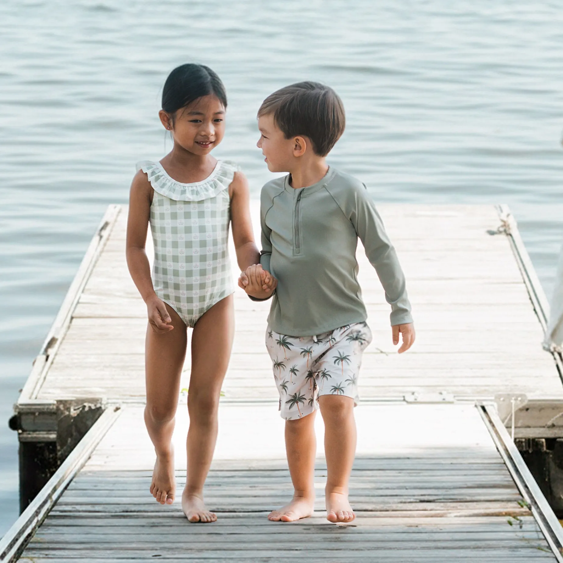 This muted green rash guard keeps little ones comfortable and protected – so they’re all set for sandy shores and glistening pools. Made from a rib-textured fabric that’s light and quick-drying, the rash guard offers total flexibility through every splash, jump, and giggle.