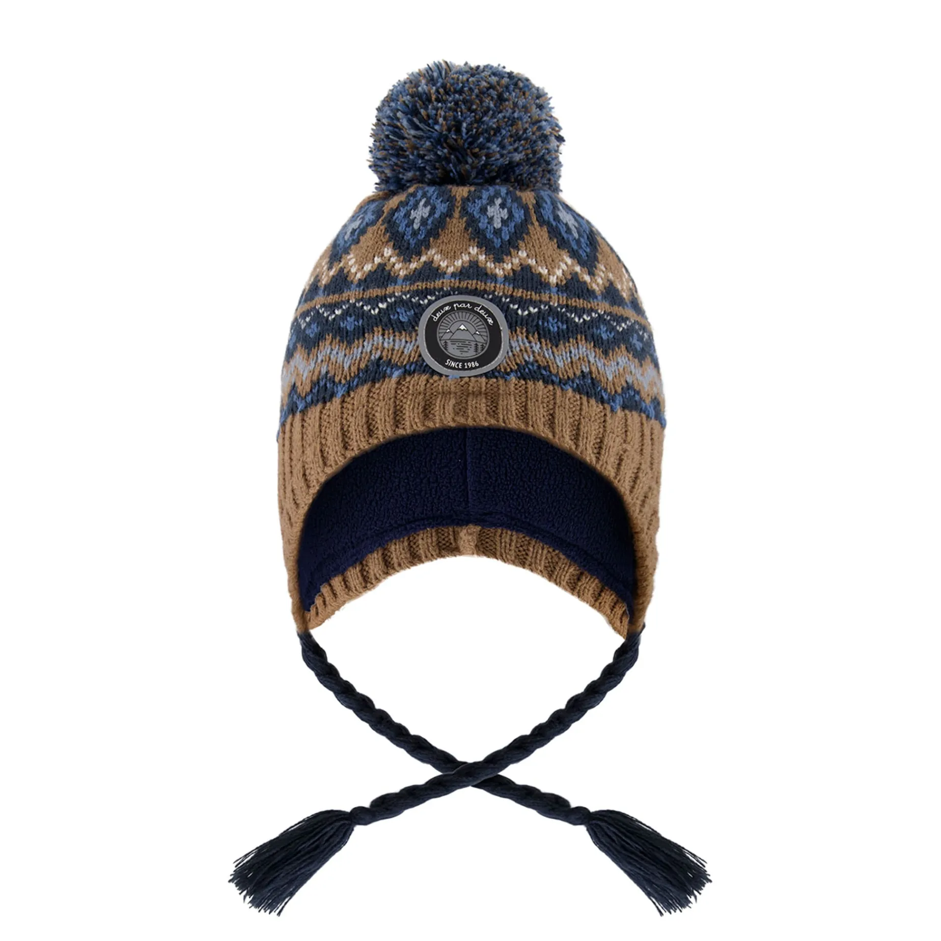Lined with polar fleece, this Peruvian knit cap is a cold weather essential. Extended sides cover the ears to provide added protection, while an intricate pattern, a fluffy pompom, and a logo patch add stylish touches.