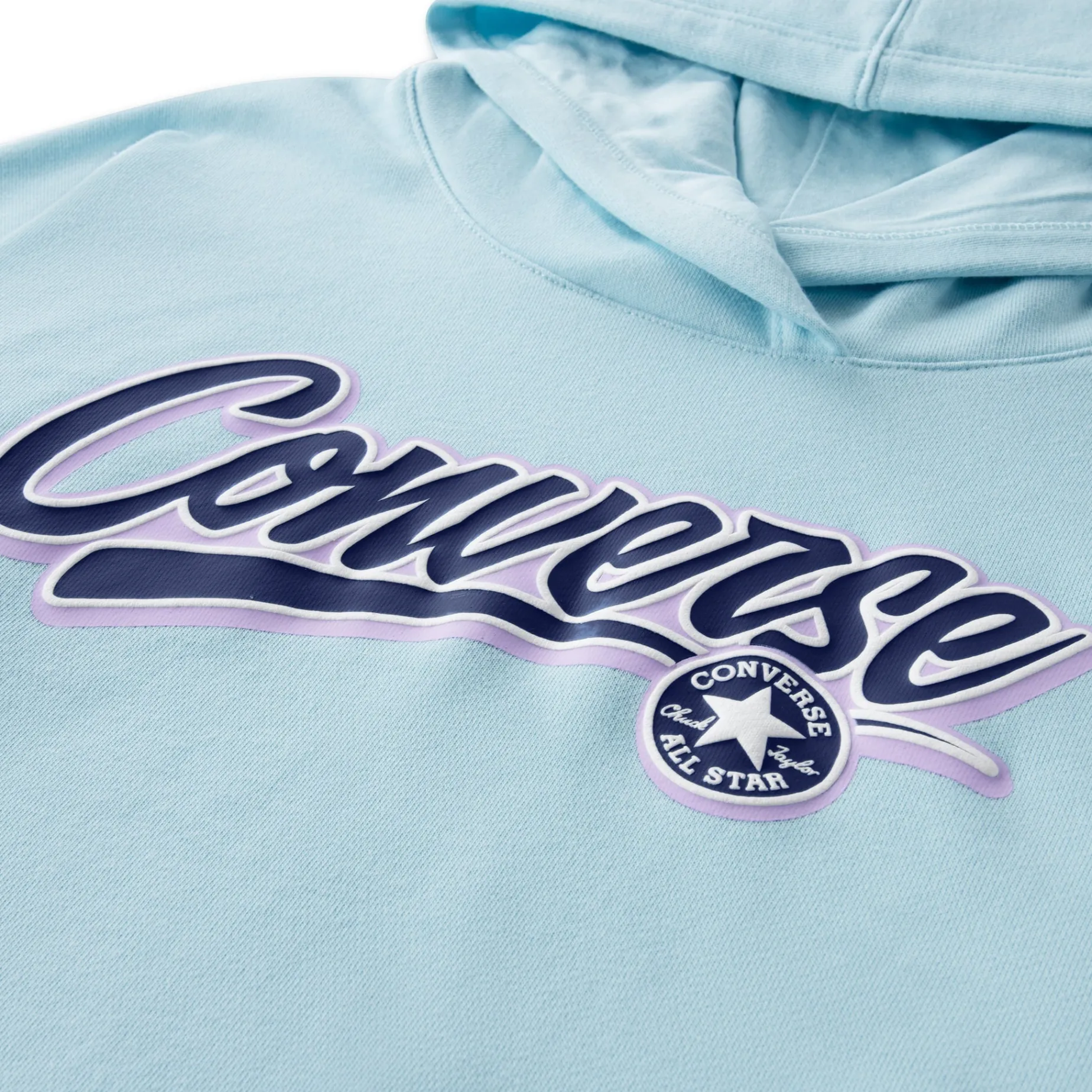 This French terry hoodie from Converse is a roomy, cropped silhouette for a relaxed fit and a comfy feel. It features a script wordmark logo graphic, the hood will have you feeling nice and snuggly, and dropped shoulders add to the laid-back feel.