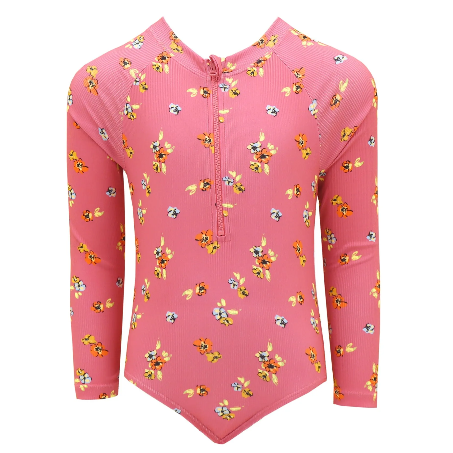Rib Flowers Long Sleeves Swimsuit 2-14y