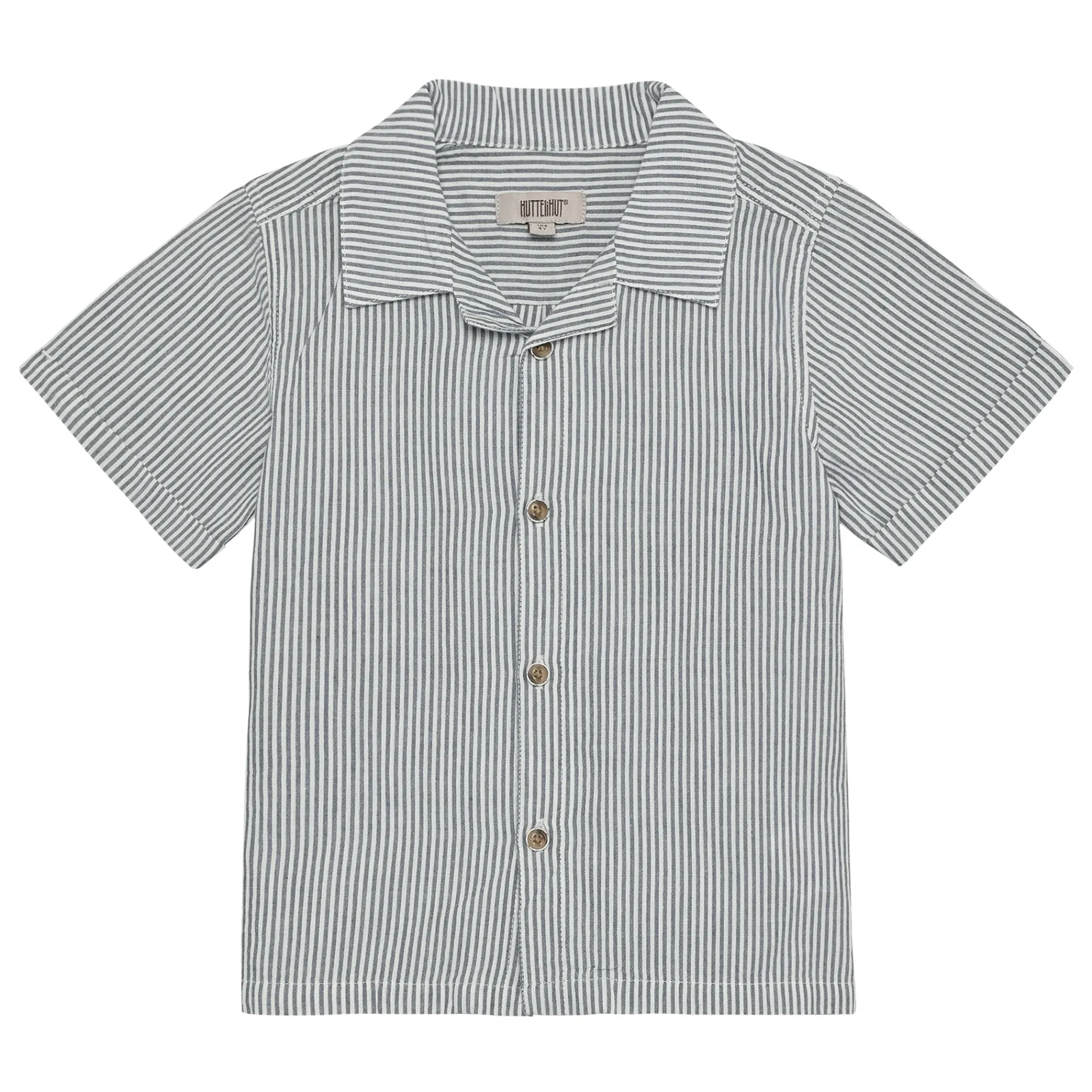 Striped shirt from HUTTEliHUT with short sleeves. The shirt has a classic collar, a small turn-up on the sleeves, and continuous buttons. Certified acc. to GOTS – organic CERES-0366