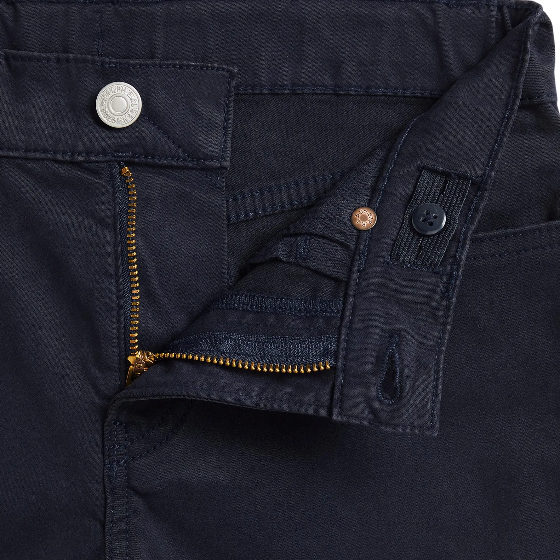 Faux-suede “Polo Ralph Lauren” patch at the back right waist.