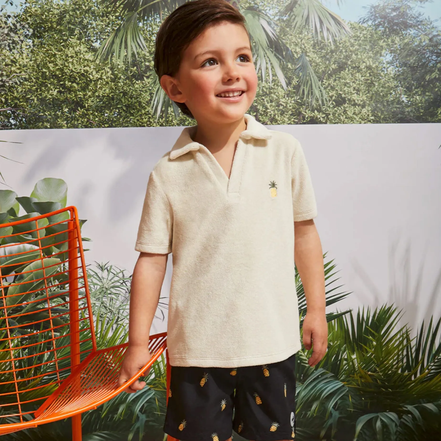 Whether he’s on the golf course with Dad or enjoying a family day at the beach, this dark blue swimsuit has a polo style that’s both cool and casual, whether wet or dry. Featuring built-in sun protection, this swimsuit is ideal for eliminating the classic everyday sunscreen battle on vacation (but don’t forget your face and legs!).