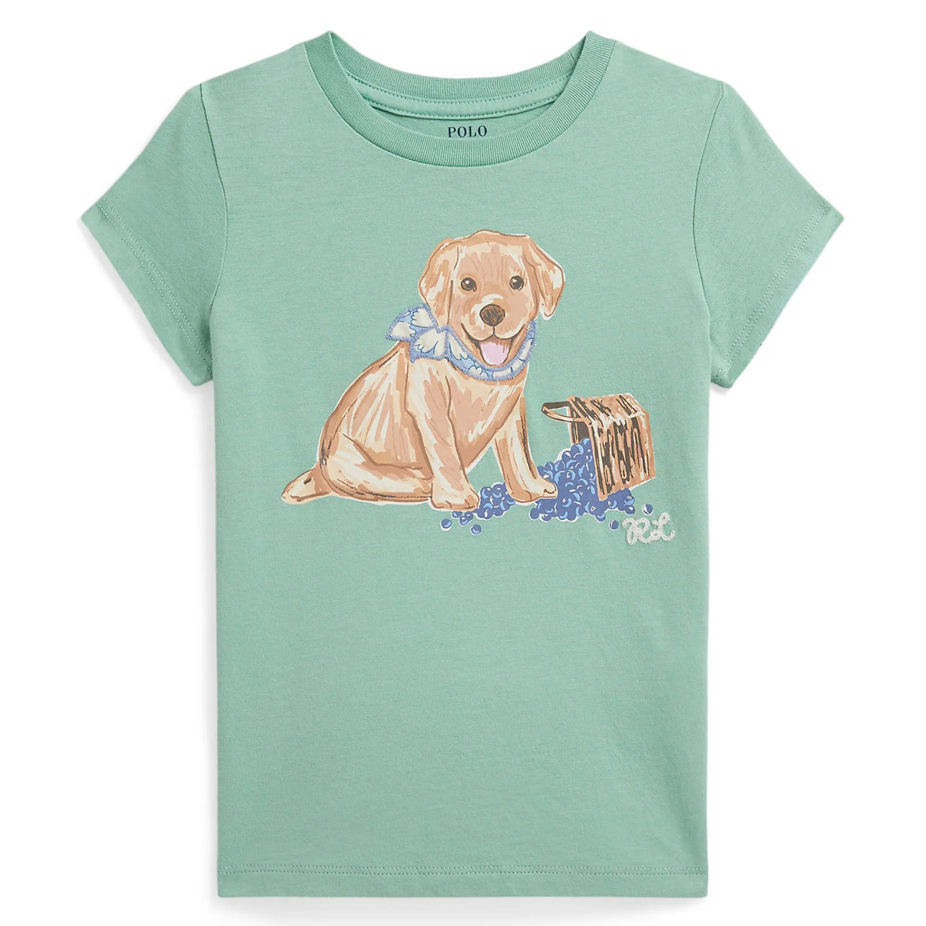 Dog print and chain-stitched “RL” embroidery at the center front.
