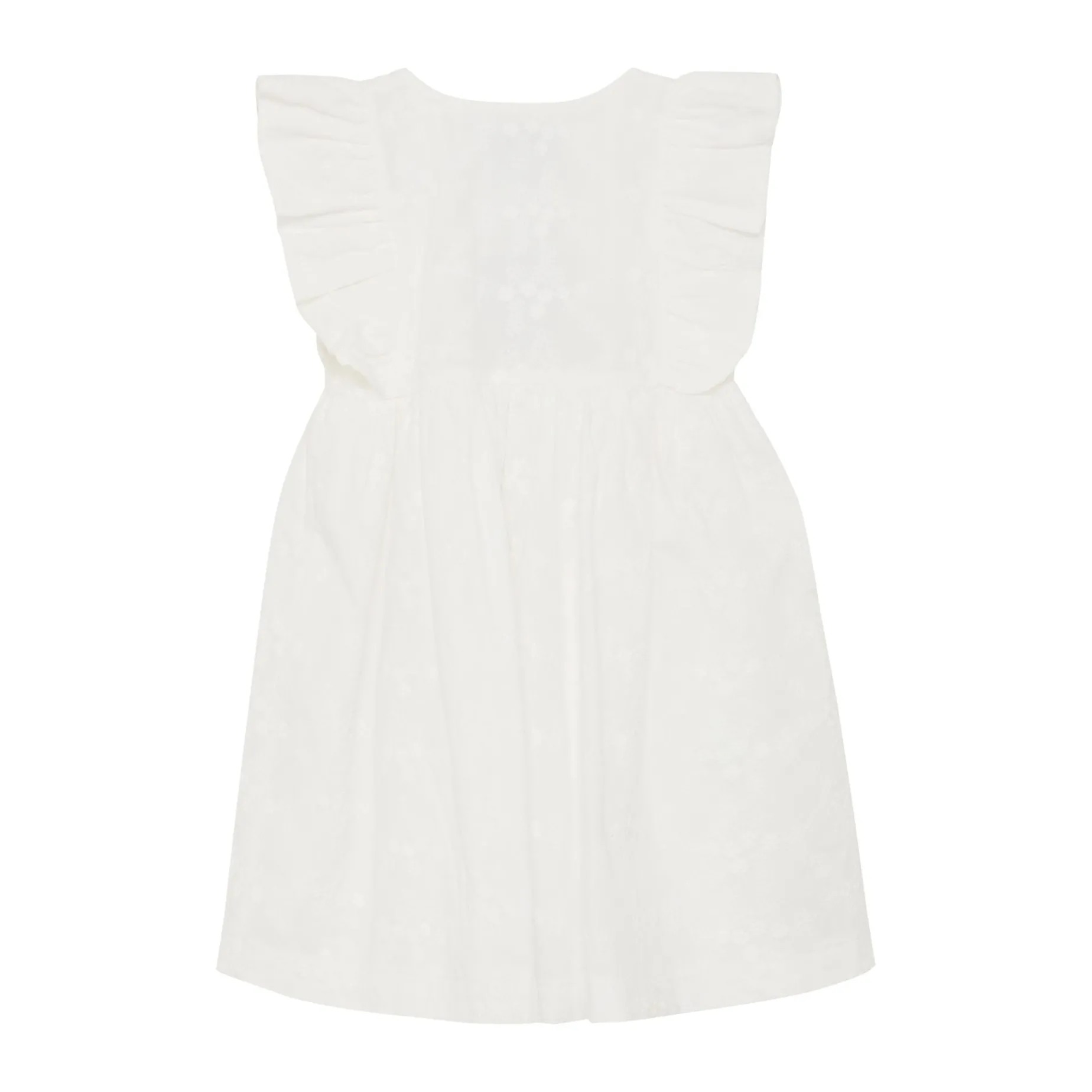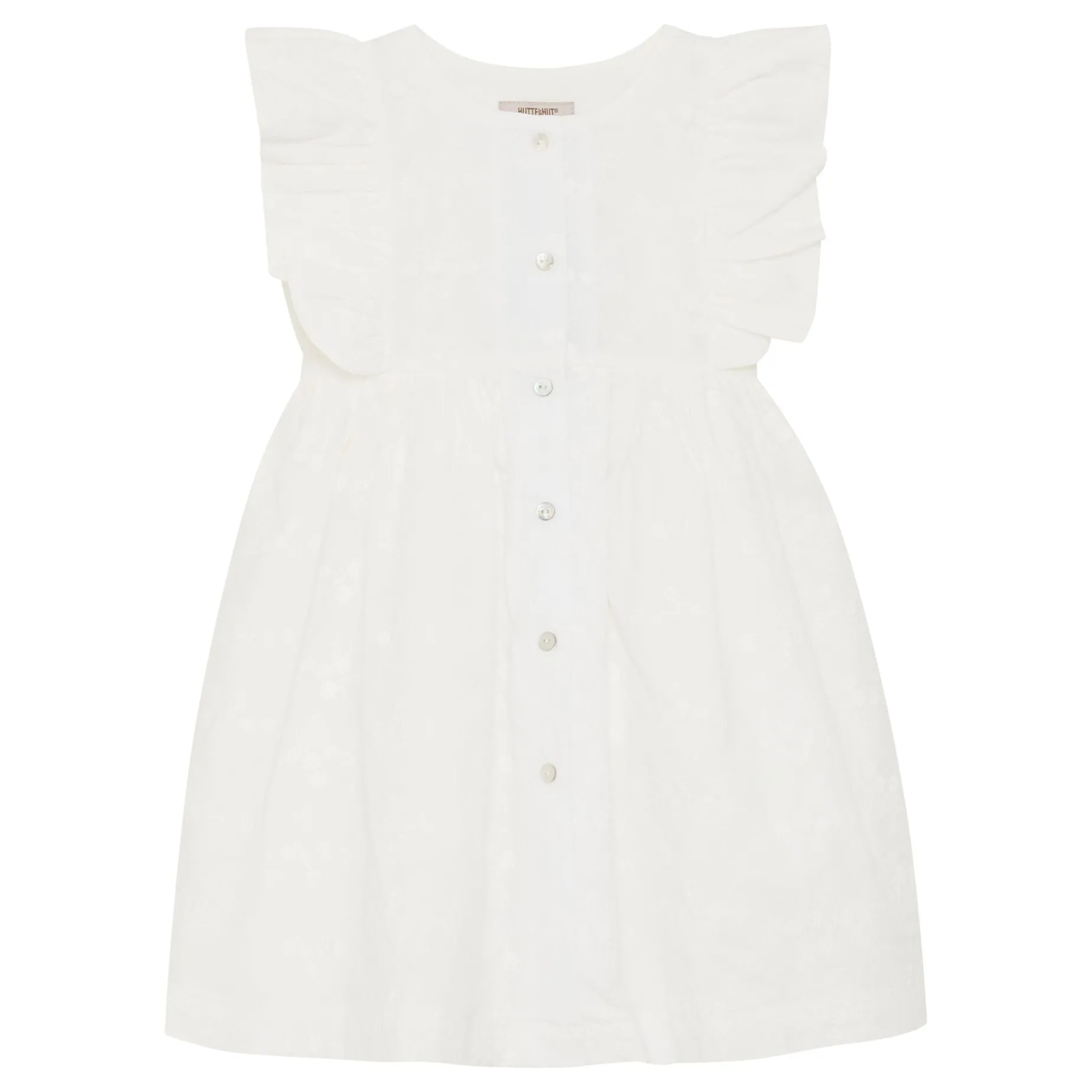 Adorable summer dress from HUTTEliHUT. It has lots of cute details and buttons in the front, and lining so it is not see through. There is embroidery all over the dress and ruffles around the sleeve opening. Certified acc. to OEKO-TEX® STANDARD 100 Cert. No. 2276-364 DTI