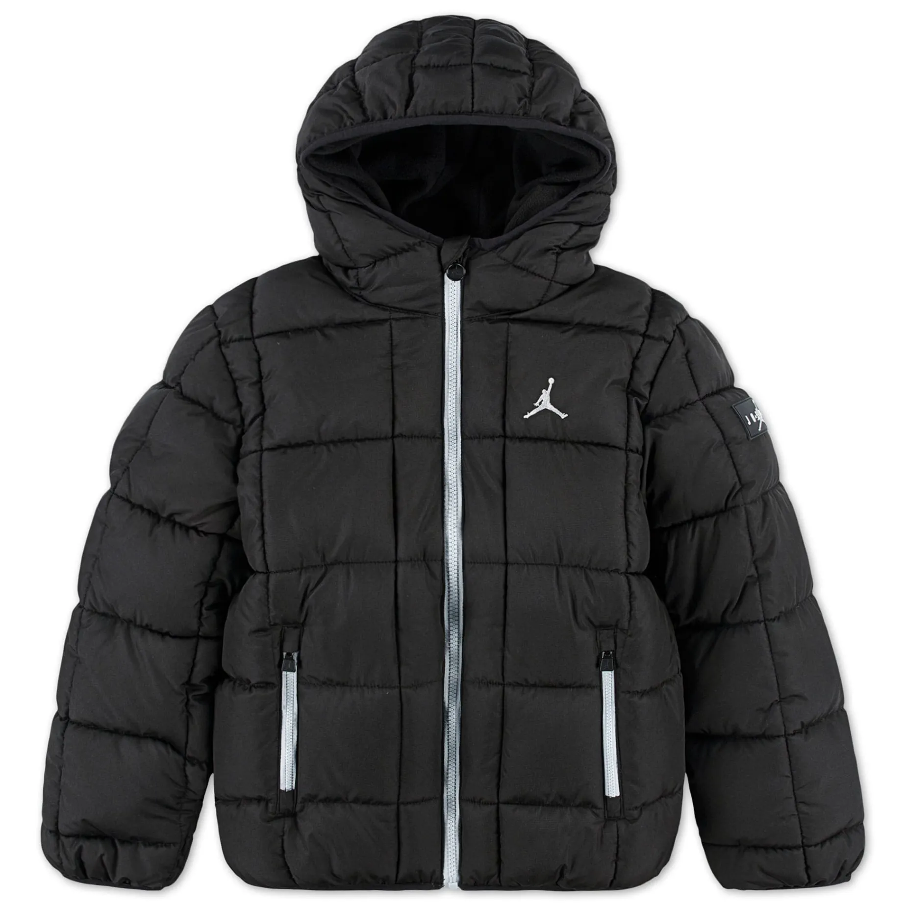 Made of water resistant poly ripstop fabric and featuring an all-over quilted stitch, this Jordan hooded puffer jacket is style and function. It’s filled with faux down for cozy warmth, the full-zip closure and roomy cut makes layering easy, and zippered pockets on the sides help kiddos secure their small essentials.