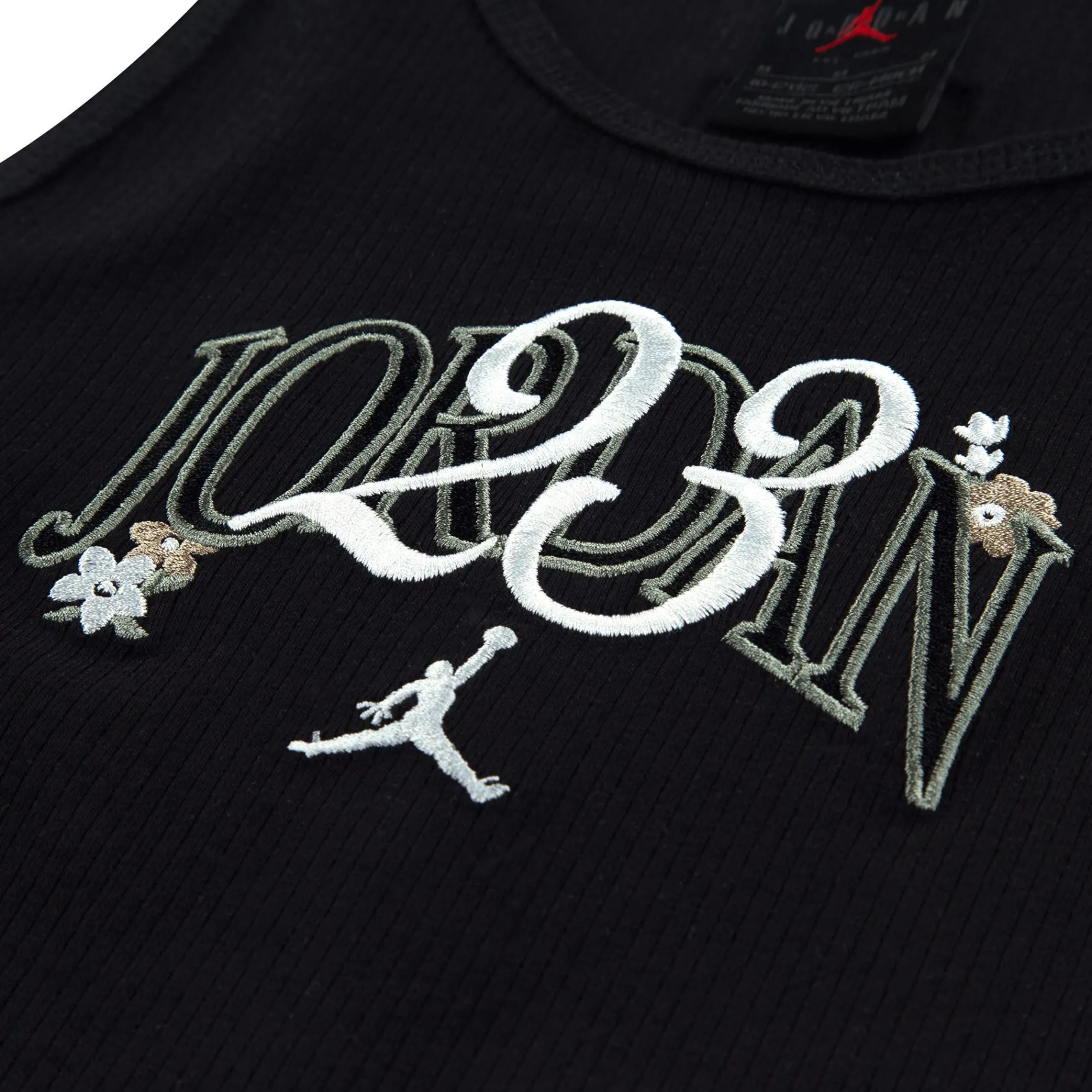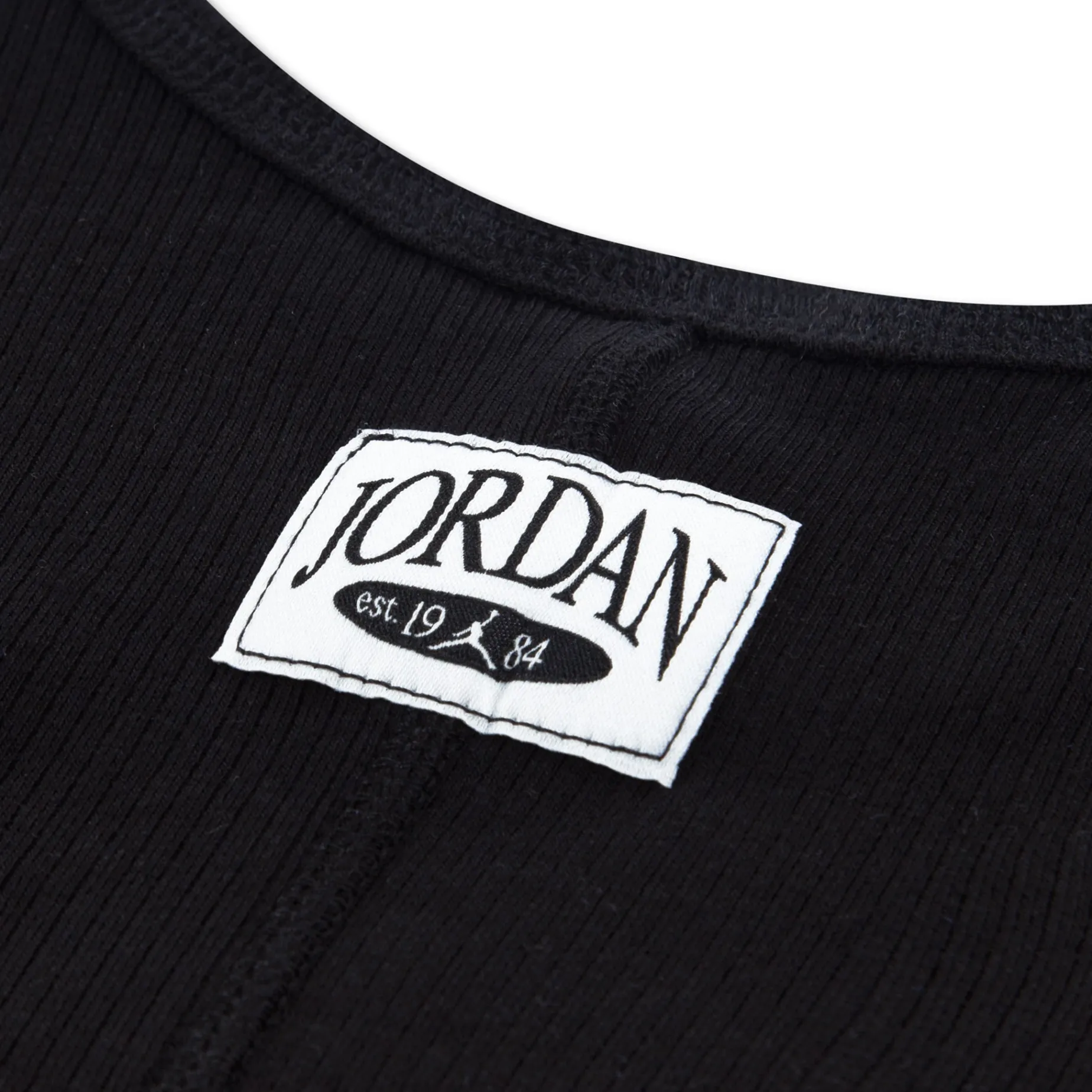 Made of soft, rib knit fabric, this Jordan tank top has 90’s babydoll tee vibes. It has a scoop neck, tagless racerback, features logo embroidery, and the lettuce hem adds a delicate touch.