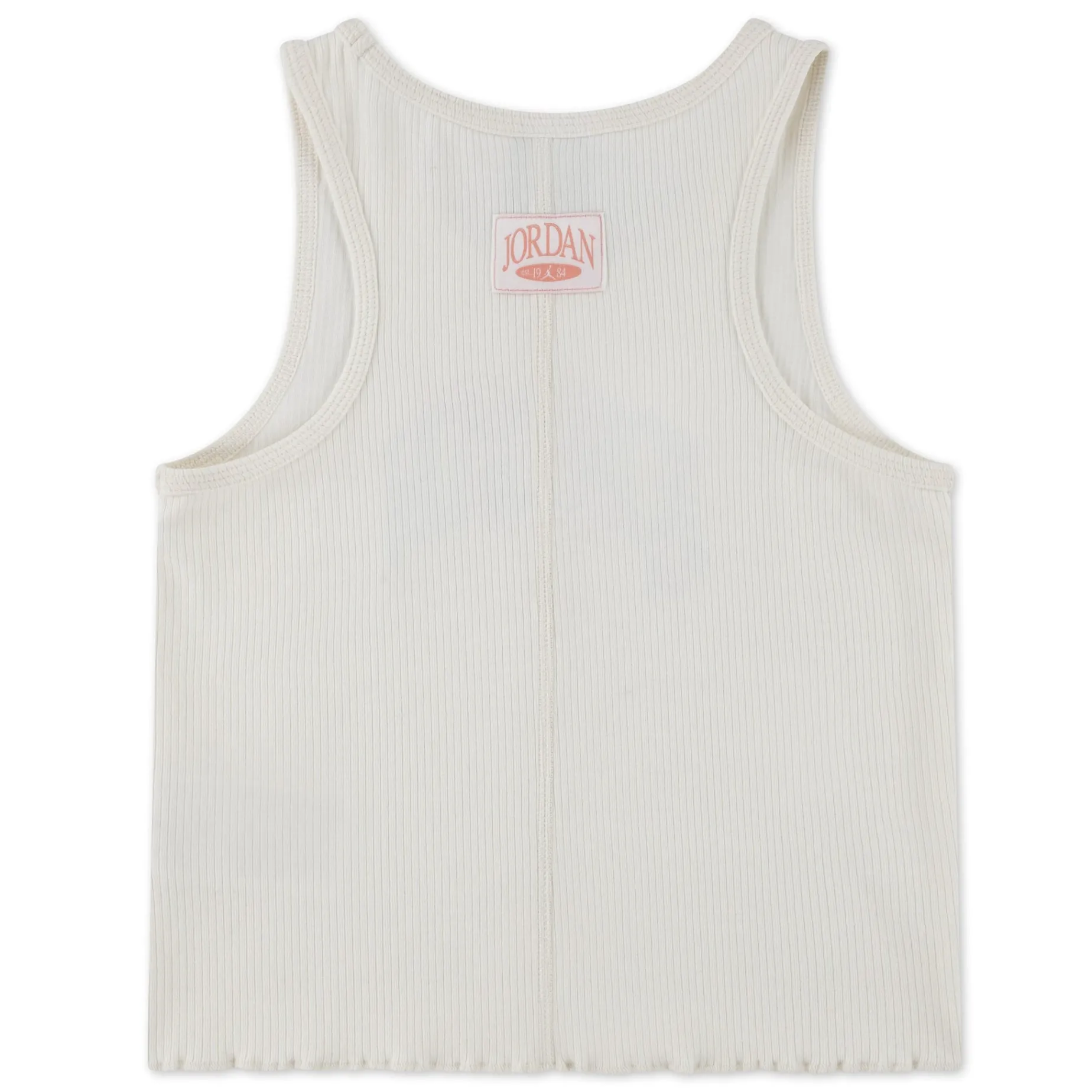 Made of soft, rib knit fabric, this Jordan tank top has 90’s babydoll tee vibes. It has a scoop neck, tagless racerback, features logo embroidery, and the lettuce hem adds a delicate touch.
