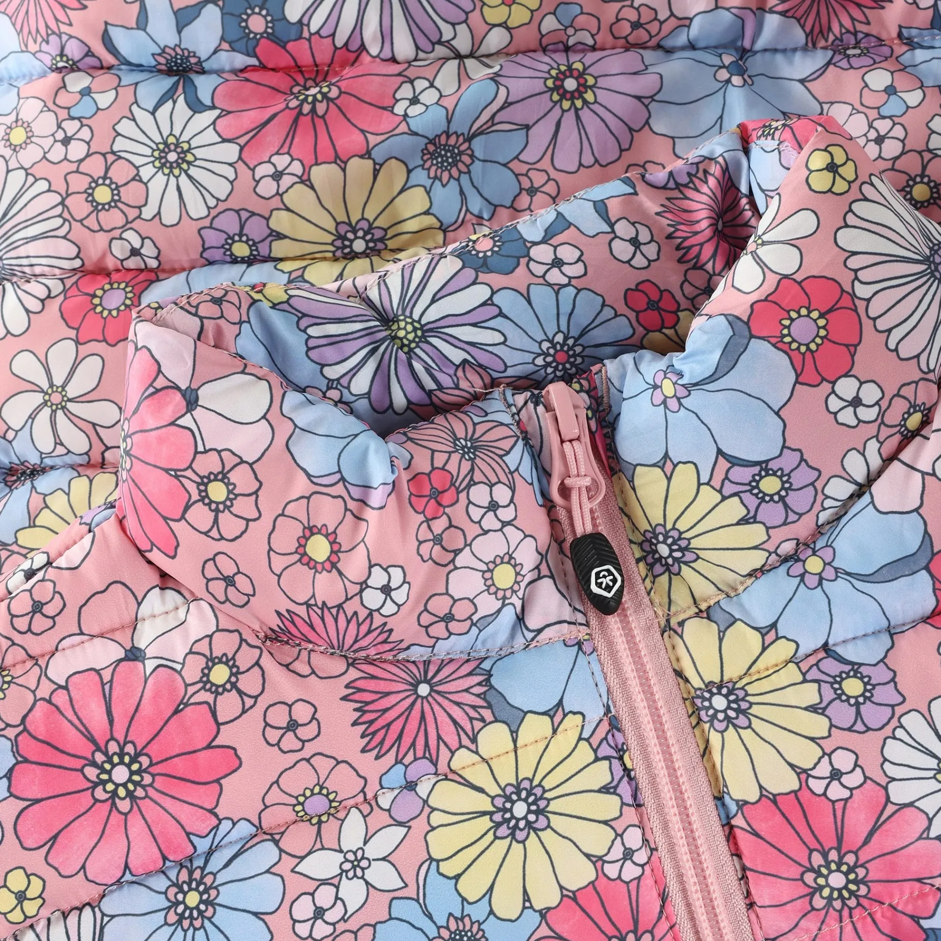 BIONIC FINISH® ECO Floral jacket with soft padding from Color Kids. The jacket is breathable and has a water- and dirt-repellent surface. A small fabric guard at the end of the zipper provides extra comfort at the chin. The jacket is equipped with pockets and reflective details. Coated with BIONIC FINISH® ECO
