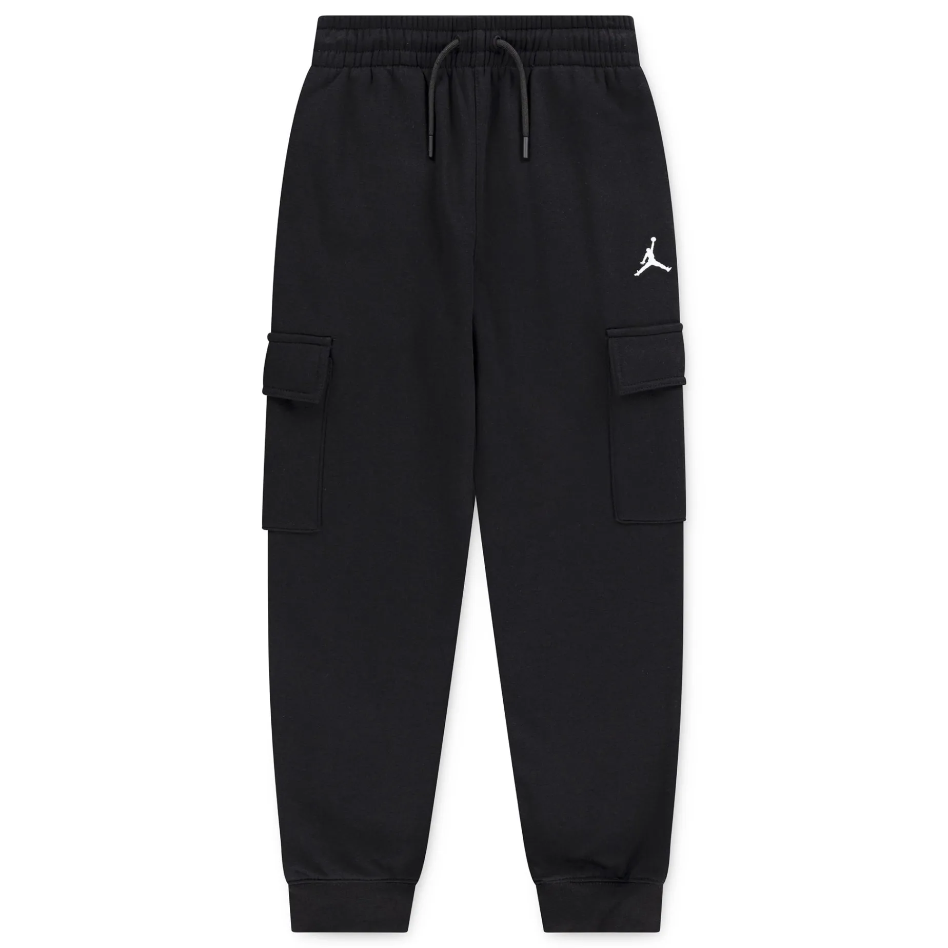 Made of cotton/poly fleece with a smooth outside and soft inside, these Jordan pants are a mash-up of utilitarian cargo pants and cozy joggers. The stretchy waistband with drawcord provides a comfy fit, side seam pockets provide spots to stash small items and cargo pockets with hook-and-loop flap closures help secure items like your cash or phone. Pair with any of the Jordan Essentials tops for a coordinated look.