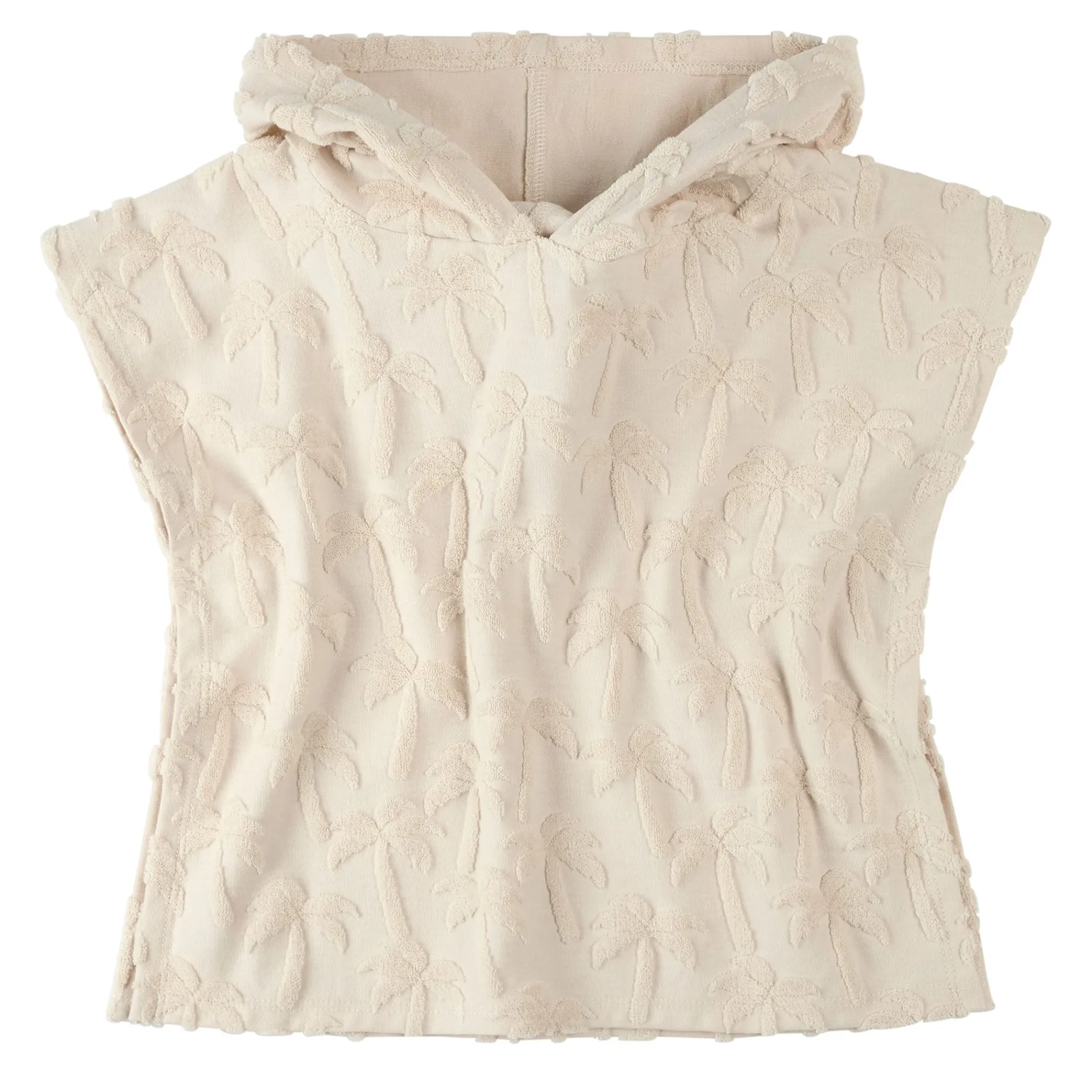 This embossed palm tree beach poncho adds a vacation feel to every day. Whether they’re splashing in the sea, heading to their swimming lesson or simply refusing to get out of the bath, this terry cloth poncho makes getting dry and dressed that little bit more fun. Open sleeves and a loose hood make it easy to throw over their head before snuggling them dry. The lightweight absorbent fabric keeps them warm while drying quickly, making the whole process easier for both parents and kids.