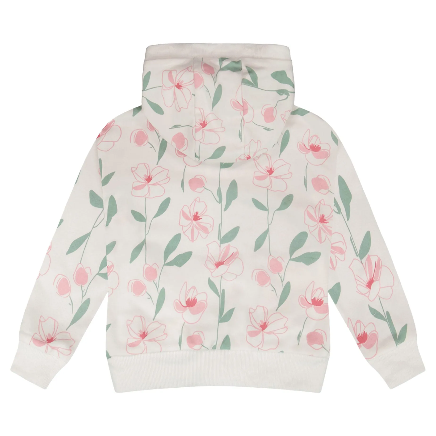 The French terry hoodie in off white with printed flowers is a cozy yet stylish layer for spring days. This sweatshirt features a practical full zip front, an attached hood, and ribbed trims that ensure comfort and flexibility. Made from soft cotton French terry with a hint of stretch, it is perfect for completing any outfit from the “Under My Straw Hat” collection.
