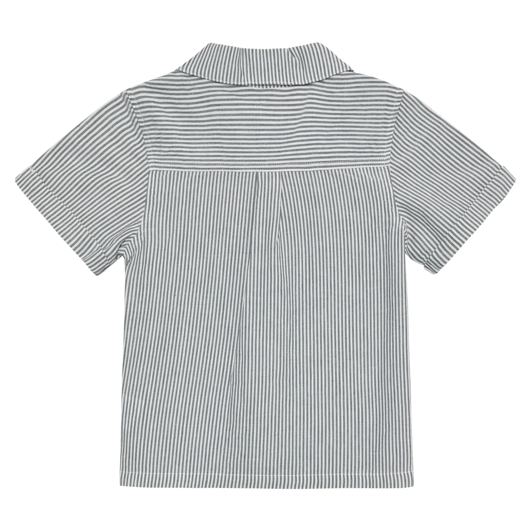 Striped shirt from HUTTEliHUT with short sleeves. The shirt has a classic collar, a small turn-up on the sleeves, and continuous buttons. Certified acc. to GOTS – organic CERES-0366